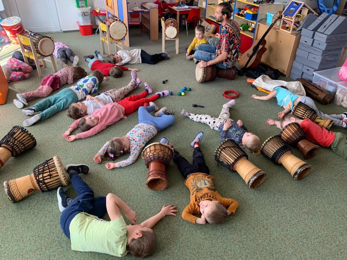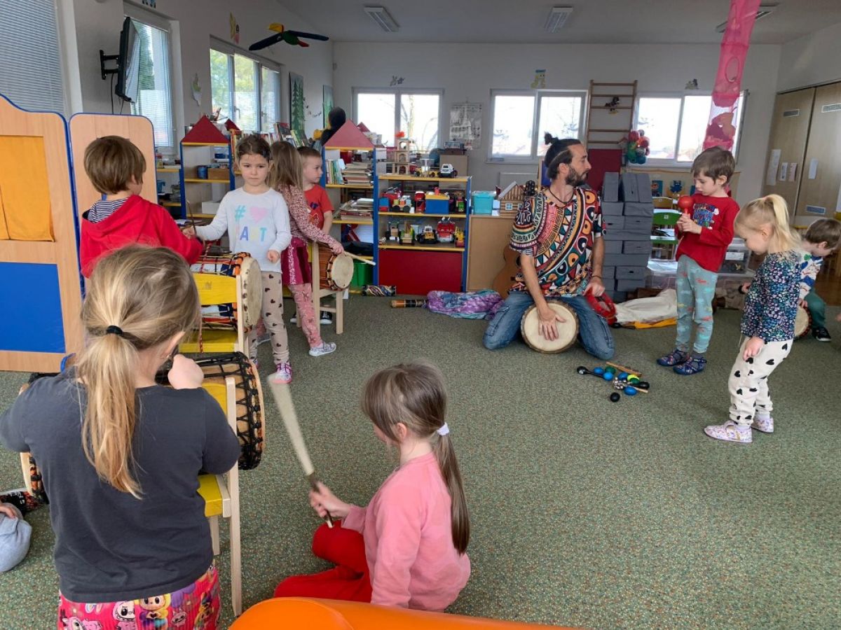 Bubnování je jedním z nejstarších a nejuniverzálnějších způsobů vyjadřování a komunikace. V prostředí škol a školek může hrát bubnování důležitou roli v rozvoji kreativity dětí. Vytváření rytmu, kombinování různých zvuků a experimentování s tempem přináší dětem radost a svobodu sebevyjádření. Děti mají přirozenou tendenci objevovat a zkoumat svět kolem sebe. Určitě jsme si ve školce bubnování užili. Děkujeme za zajímavý program.