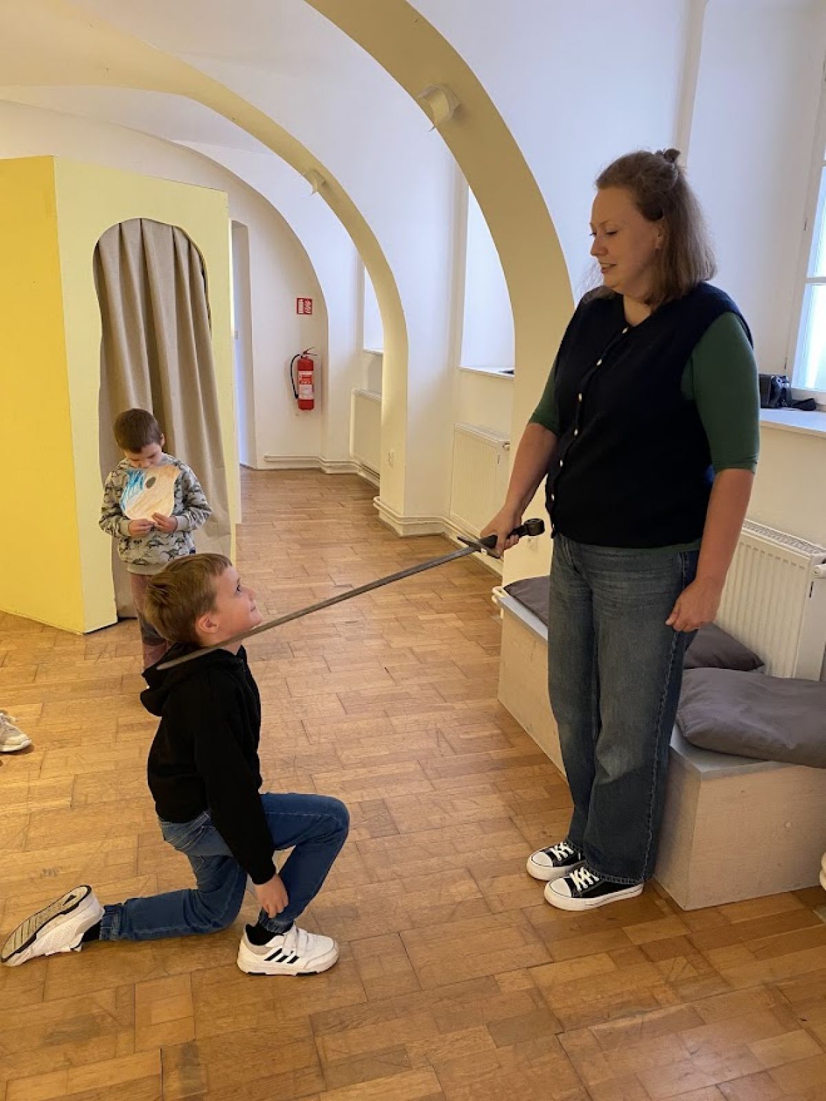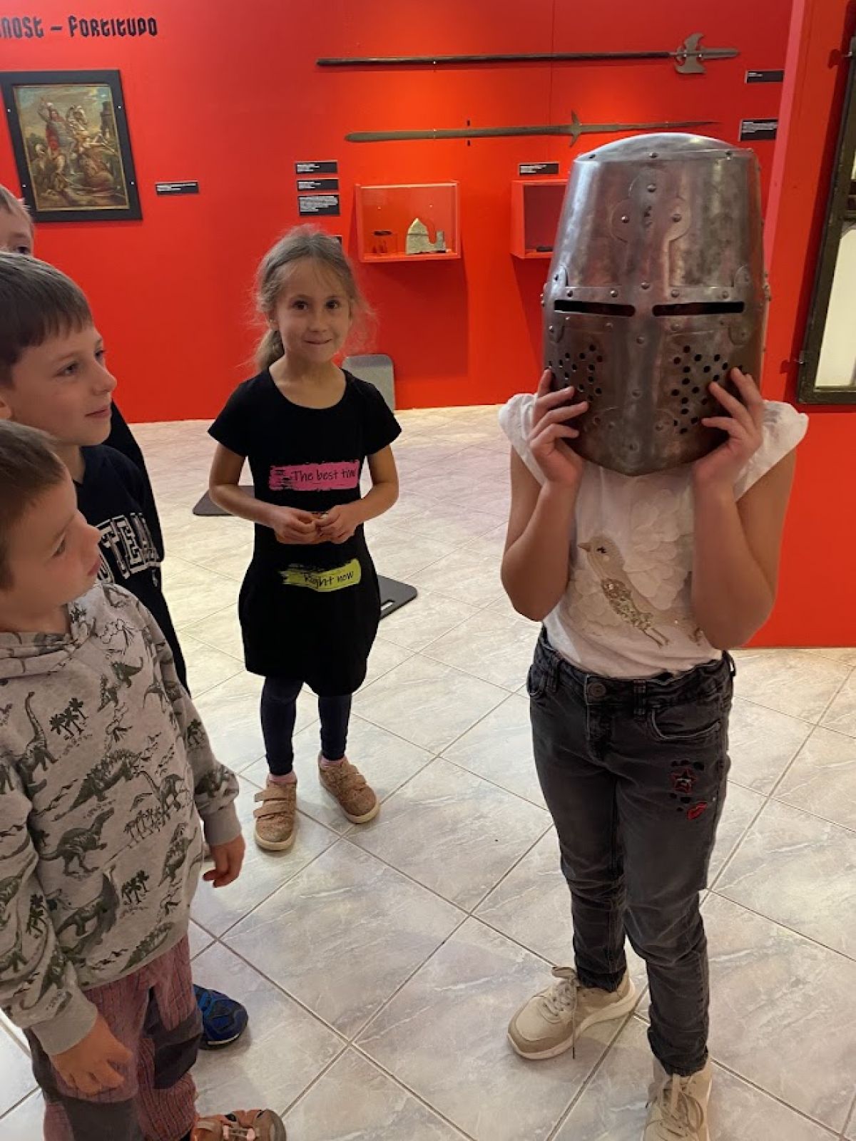 První třída se vydala na jejich první společné dobrodružství do Muzea ve Šlapanicích. Velkým zážitkem byla možnost si vyzkoušet některé části výzbroje na vlastní kůži. Najednou žáci zjistili, že helma není jen ozdobou, ale pořádně těžkým kusem kovu. A že meč, který ve filmech vypadá lehce, váží tolik, že s ním není snadné ani pohnout. Na závěr po objevení rytířských vlastností a vyrobení si vlastního štítu, byli prvňáčci pasování na rytíře.