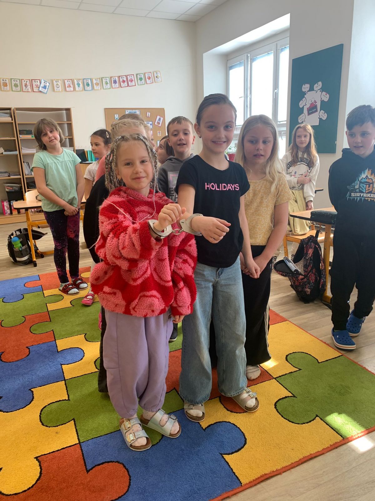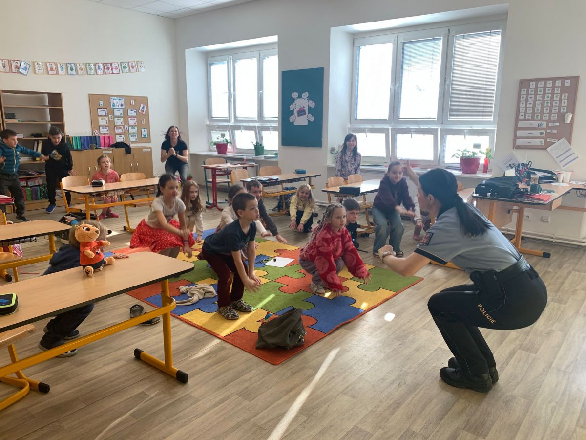 Žáci první a druhé třídy si připomněli složky integrovaného záchranného systému a prohlédli si vybavení policisty. Důležitá byla informace, na koho se obrátit v případě, že se ztratí. Stejně jako nácvik správného přecházení silnice. Odměnou pro děti bylo vyzkoušení si policejních pout.