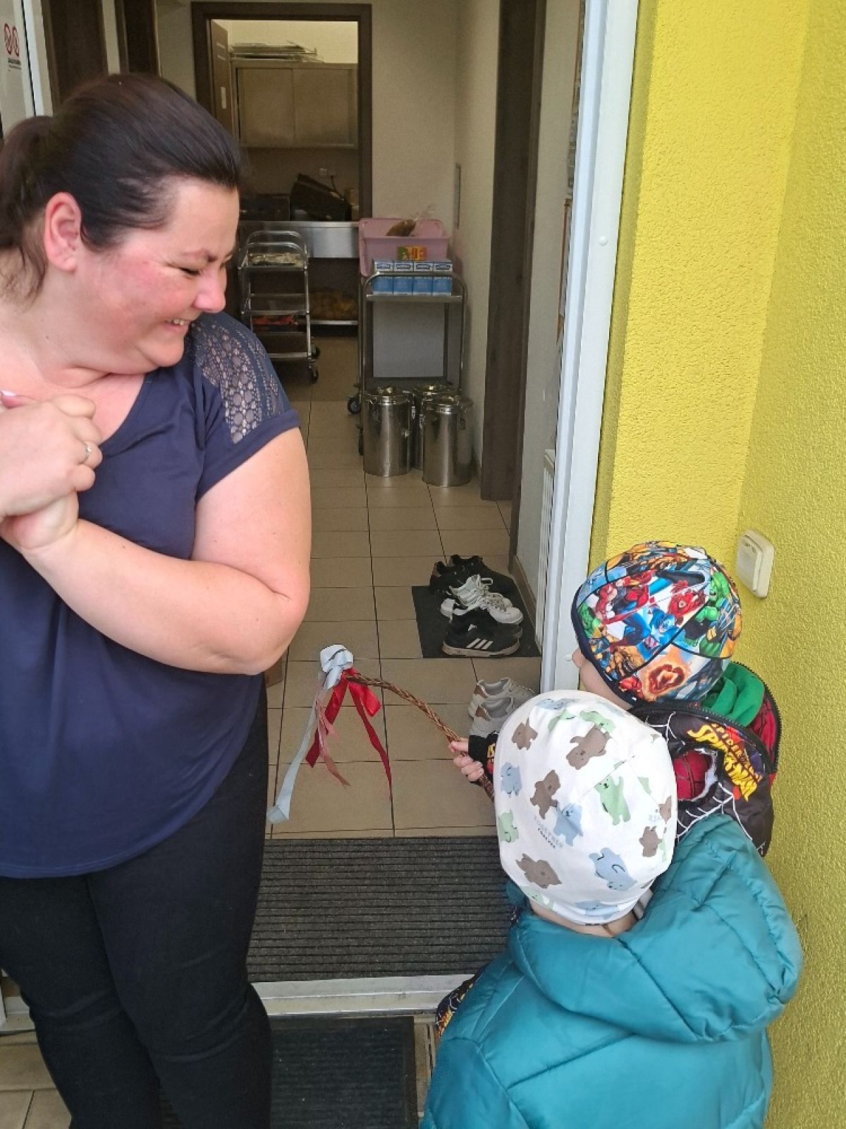 „Hody, hody, doprovody! Děti z mateřské školy se dnes proměnily v malé koledníky. S pomlázkou jsme se vydali před kuchyni, aby vymrskaly paní kuchařky. Chtěly jim tak poděkovat za všechna ta dobrá jídla, která jim s láskou celý rok připravují. Hezké Velikonoce!