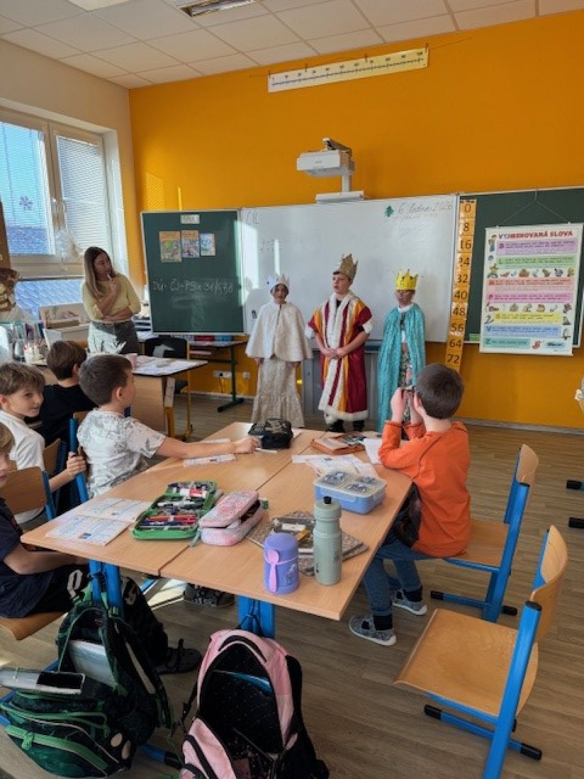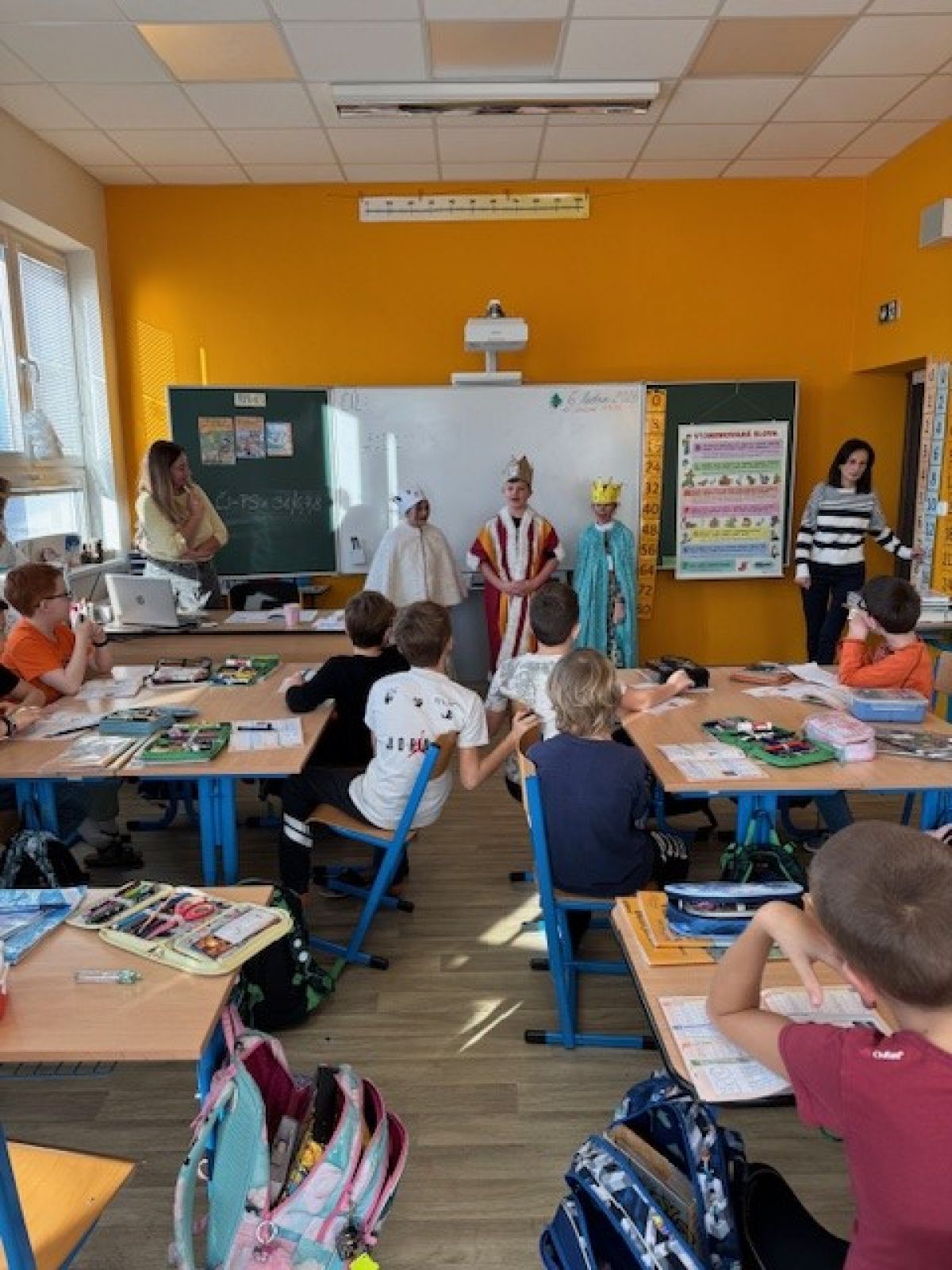 Žáci 3. třídy se letos ujali role tří králů a společně přinesli do školy kousek sváteční atmosféry. Vojta, Laurinka a Rosie potěšili krásným zpěvem všechny spolužáky ve třídách a vykouzlili úsměvy na tvářích malých i velkých.